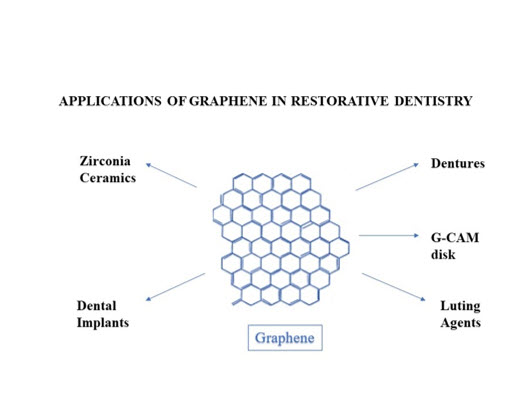Graphene Nanoparticles (GNPs), an upshot of nanotechnology have attracted great interest in diverse research fields including dentistry for their unique properties. Graphene Nanoparticles are cytocompatible and when combined with other compounds, they possess improved synergistic antimicrobial and anti-adherence properties against oral pathogens. The cytotoxicity of graphene in the oral setting has been reported to be very limited in the scientific literature. Current applications of graphene include reinforcing Polymethylmethacrylate (PMMA) for the fabrication of dentures, improving properties of dental luting agents like glass ionomer cement, reinforcing restorative composites and ceramics, and improving osseointegration of titanium dental implants by coating with graphene. This paper reviews the nanoparticle ‘Graphene’ and its potential uses in the field of restorative dentistry.